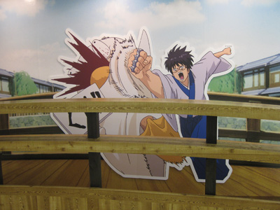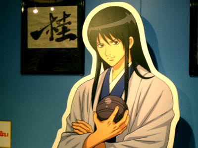 銀魂コーナーでパネル、原画、スクーターの展示。