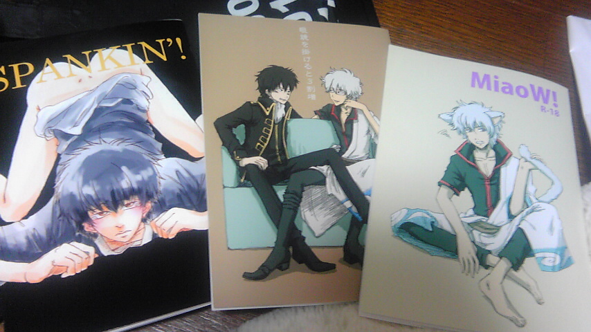 発行物は、新刊が2部(銀さんめがね健全、銀猫えろ)と、既刊(尻叩きエロ)で