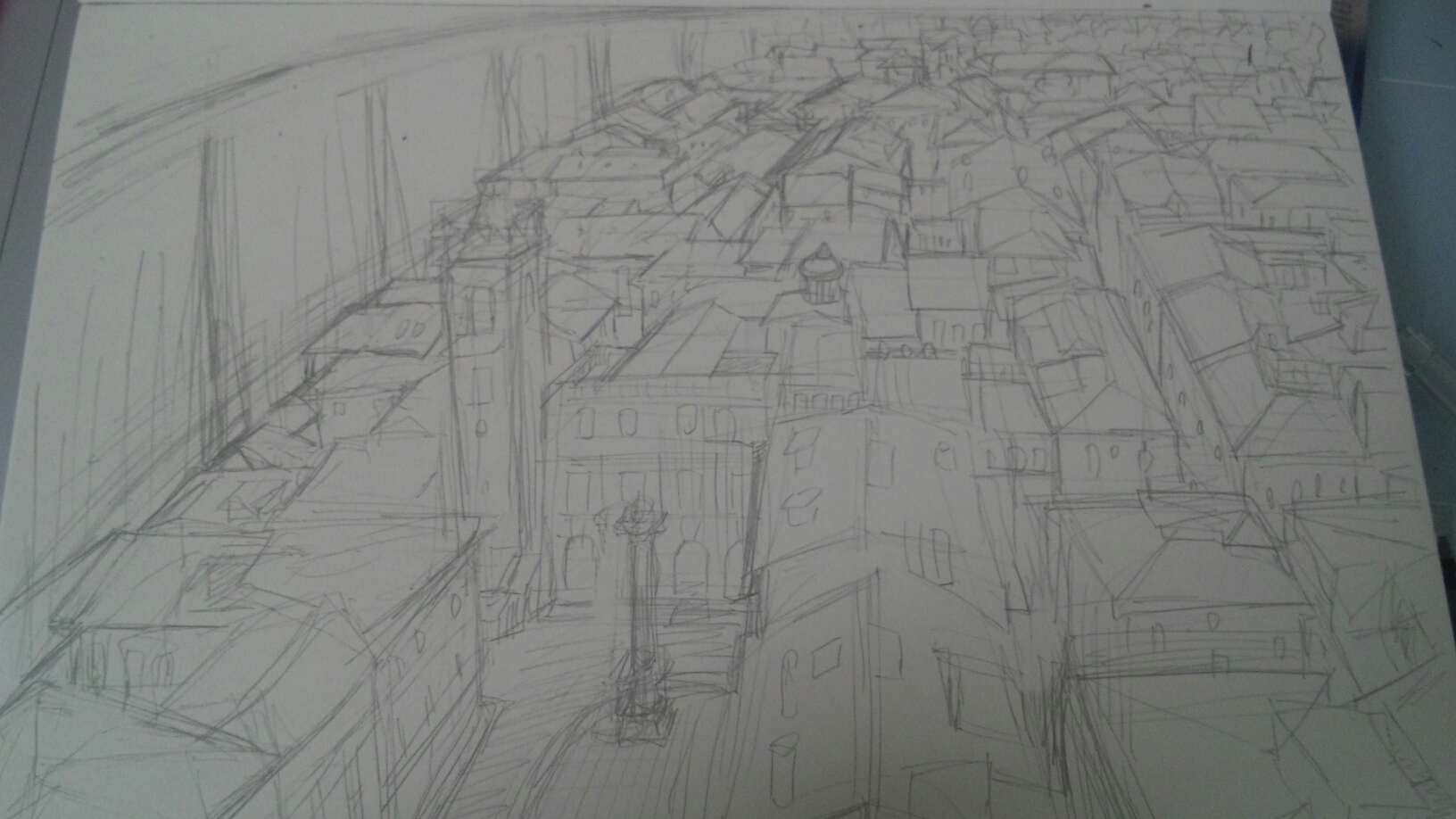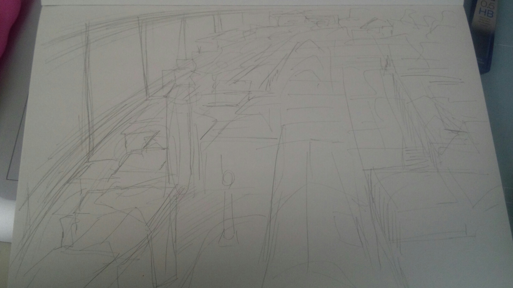 さいきんこういうゴチャゴチャした町並み書きたくなります。が、体力がないのでなかなか着手できず。